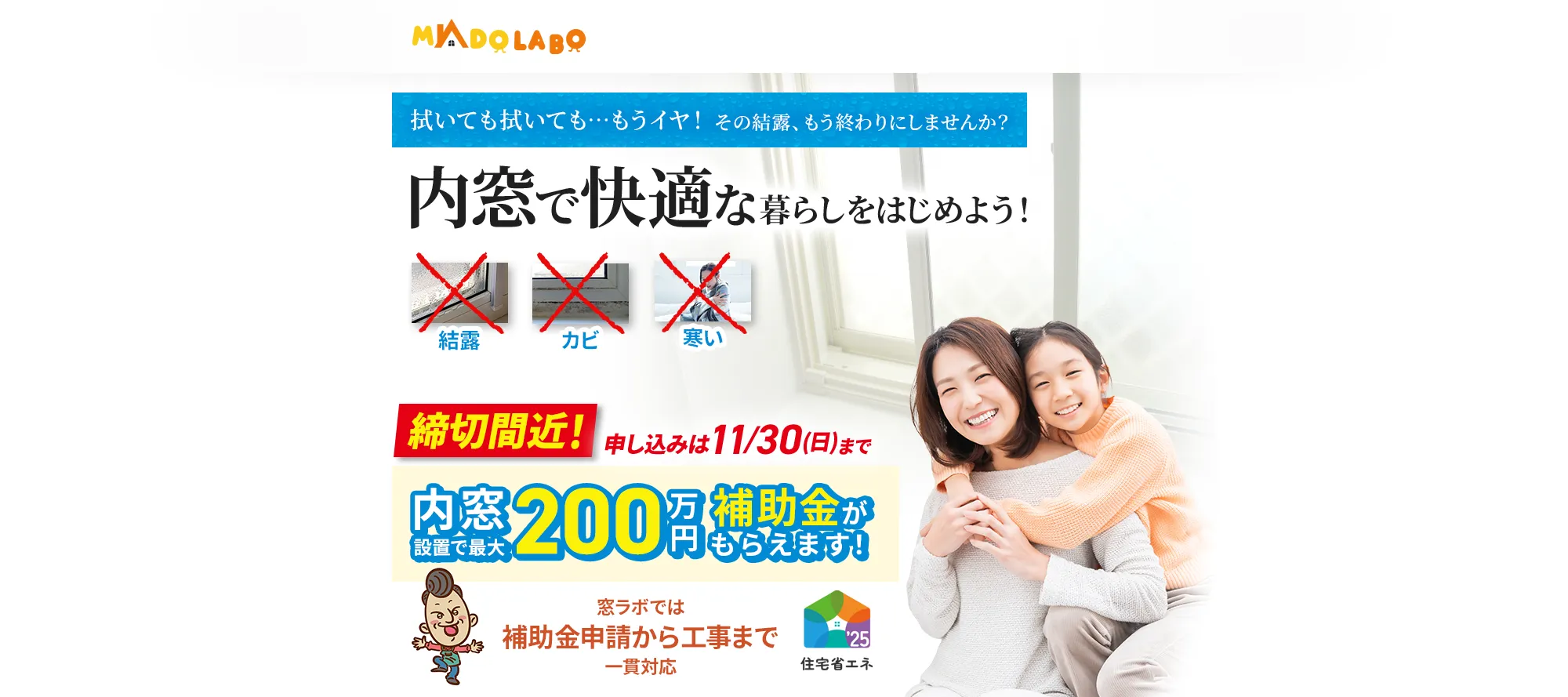 はい、窓ラボは「先進的窓リノベ2025事業」を含む各種省エネ補助金制度の対応登録業者です。使える補助金の内容や申請方法・条件についても、施工前にサポートいたします。