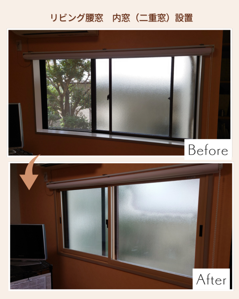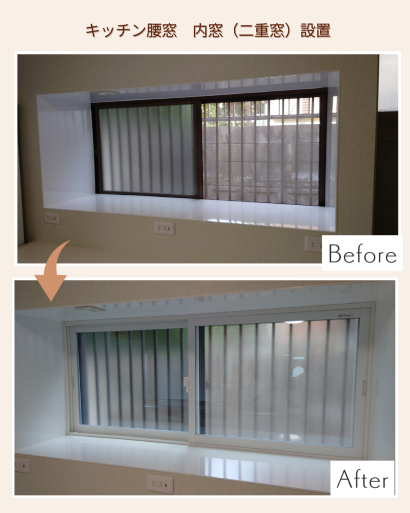 リノベーション済みの物件でも、窓は断熱性能の課題が残りやすい部分です。実際に暮らし始めてから「思ったより暑い・寒い」と感じるケースは少なくありません。内窓リフォームは後付けで施工でき、見た目にも自然に仕上がるため、リノベ済み物件との相性がとても良い工事です。今回のように限られた条件下でも工夫次第でしっかりと性能を発揮させることができます。これからも、お客様の住まいがより快適で安心できる空間となるようご提案を続けてまいります。