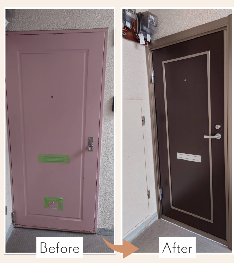 福岡市南区 築約50年の賃貸マンション玄関ドアを1DAYリフォーム