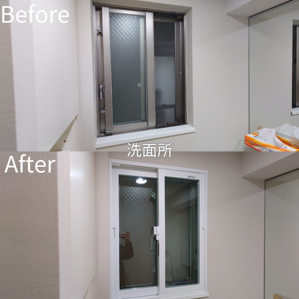 洗面所の窓にも内窓を設置し、水まわり特有の冷えや結露対策もしっかりカバーしています。